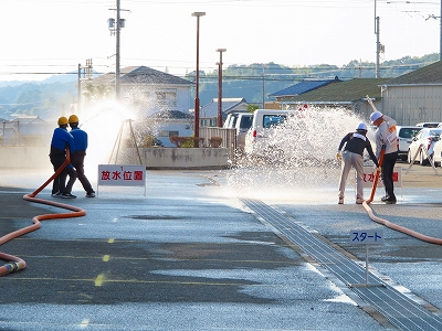 競技では、消火器、屋内消火栓、屋外消火栓それぞれの消防用設備を取扱い、火点標識を倒すまでのタイムレースを実施し、消火器の部上位3チーム、屋内消火栓及び屋外消火栓の部上位2チームに表彰を行いました。