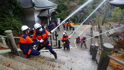 各寺院の関係者の方々は、速やかに119番通報をなされ、消火栓や放水銃を適切に使用して放水を行われました。