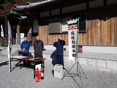 今回の訓練は、秋季火災予防運動(11月9日から11月15日までの1週間)の一環として、山林火災への備えや久学寺周辺の水利確認、初期消火や避難誘導の連携を確かめるために行いました。