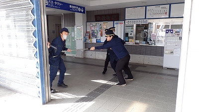 「刃物を持った不審者」への対応訓練の様子