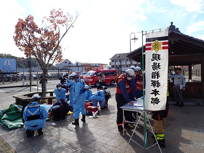 令和7年11月11日(火)、北条鉄道株式会社 北条町駅において、北はりま消防組合、北条鉄道株式会社、加西市役所、加西警察署の4機関が参加し、関係機関合同訓練を実施しました。