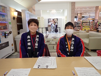 普及啓発イベントでは、婦人防火クラブと女性消防団員の皆様の協力を得て、住宅用火災警報器のアンケートを実施し、回答いただいた方に記念品や火災予防に役立つパンフレットをお渡ししました。