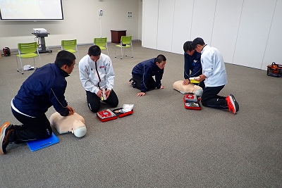 今回は、指令センターの見学、ゴルフ場への予防査察に同行、救助や救命処置に関する講義、空気呼吸器を背負って煙が充満する部屋に進入する訓練などを体験しました。