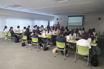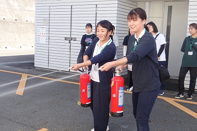 加東市内の各事業所等から30名の女性職員が参加され、午前中は防火講義「火災から身を守る」をテーマに家庭に潜んでいる火災の危険性を学び、水消火器や公設消火栓、屋内消火栓を使用した初期消火体験、実際火がついたてんぷら油の消火体験や、濃煙室からの避難体験等たくさんの体験型研修を実施しました。