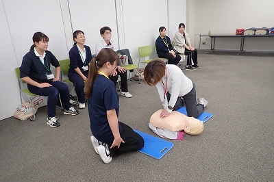 また、午後からは普通救命講習を受講し、身近な人が倒れた際の対処法について学習しました。
