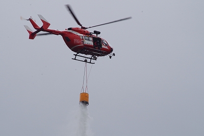 また、今回は近年全国的に多発している大規模林野火災への対応も見据え、兵庫県消防防災航空隊とも連携し、空と陸からの立体的な活動を展開、延焼拡大防止の手順を入念に確認しました。