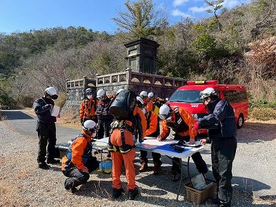 訓練想定は、加東市三草山登山道にて「本人通報、成人男性1名が負傷」との通報で開始されました。