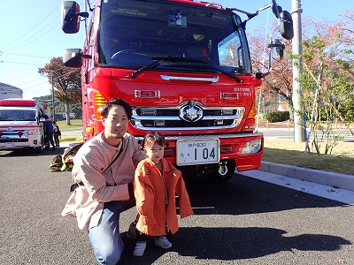 当日は、救急車及び消防車の展示、ミニ救急車きゅうちゃんの試乗体験、こども用消防服を着ての記念撮影を実施しました。