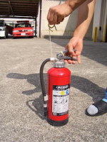 一般的に家庭や事業所で普及している粉末消火器の使い方を説明します。