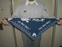 ① 正方形のバンダナなどを三角形に折ります。(大きめのバンダナなどであれば三角巾の代用として使用できます。)